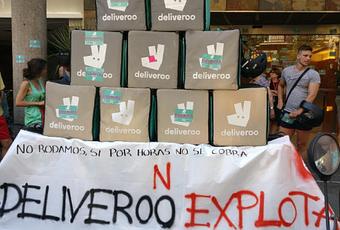 Deliveroo es una empresa de reparto a domicilio de comida de los restaurantes más variados de nuestras ciudades. Un reparto rápido y ecológico que realizan sus trabajadores autónomos principalmente en bicicleta. Lo supuestamente bueno de trabajar con esta empresa, según dice en su página web, es: “Eres libre de elegir cuando repartes. Comunícanos cuándo podemos contar contigo y listo”, “Tu smartphone es tu principal herramienta de reparto”, “Somos una empresa digital, no tendrás que andar con dinero en metálico”, “Reparte a tu gusto, con tu chaqueta o camiseta favorita. ¡Tú eliges!”, “Ingresos atractivos, y las propinas son íntegras para ti”. Pero lo que no dice la página web de esta empresa es el sistema de semiesclavitud al que somete a sus trabajadores, idéntico al que podría darse en el mencionado “contrato de cero horas”, al estar ligados al móvil a la espera de que la empresa se ponga en contacto con ellos para ofrecerles algún servicio y sin tener aseguradas un mínimo de horas, y encima con el problema añadido de que los trabajadores que prestan sus servicios para ella lo hacen bajo la fórmula de autónomos, por lo que son ellos los obligados a pagar su cuota a la Seguridad Social y la cuantía de esta no hace distinciones en función de los ingresos obtenidos por el trabajador ese mes.