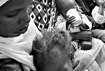 Empezamos por la imagen. Aquí podemos ver como la madre de Biftu alimenta a su hijo.Recuerdo perfectamente el momento en el que llegó al hospital. La madre lo traía en brazos, su hija apenas tenía fuerzas y materia muscular para sostenerse en pie.Magartu, la madre, se sienta ante mí, y me mira. Su mirada profunda, triste, desesperada, me alerta. Algo va mal. Magartu iba cubierta con una tela que en algún lejano día llegó a ser blanca y que cubría su cabeza y cuerpo. Se levanta la tela y entonces lo entiendo todo. Deja al descubierto una escena que hiela mi piel. Una mirada profunda, hundida, seria, desesperada que naufraga en medio de dos surcos. Una piel que se hunde y se funde con los huesos ante la ausencia de grasa subcutánea, de músculo, de tejido…