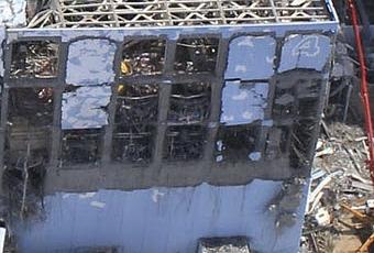 Este es el estado en que se encuentra el Reactor número 4 de la planta nuclear de Fukushima (ver el número en la esquina superior derecha del edificio). Se puede apreciar la destrucción total del reactor por los efectos del sobrecalentamiento del núcleo, confirmando la inevitable fuga radioactiva que ha comenzado a llegar al océano y a las napas subterráneas. Lo que hemos advertido desde el primer día está ahora a la vista. Los daños son gigantescos y la crisis nuclear puede permanecer por décadas, tal como ha sido con Chernobyl. La situación ha estado siempre descontrolada, y la empresa Tepco y el gobierno nipón han sido incapaces de decir la verdad. La siguiente es una foto capturada por el satélite el 18 de marzo: