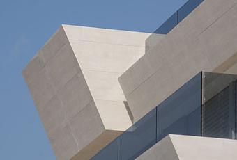 Este carácter escultórico se completa con la proyección de la vivienda hacia el exterior mediante la utilización de vidrio negro. El otro material dominante en la construcción es la piedra caliza blanca.