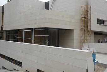 Se han utilizado materiales para la fachada como la piedra travertina, y vidrio negro. Vivienda cúbica de grandes volumetrías, inspirado en la líneas rectas y minimalistas de los comienzos del estudio.