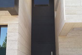 Exteriormente la vivienda se caracteriza por su sobriedad estructurada y diseñada en planos de líneas rectas. Se han utilizado colores característicos en el Estudio como son la mezcla del blanco y el negro, y materiales como el marmol travertino y el vidrio negro.