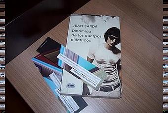 De momento solo me ha llegado este que es "Dinámica de los cuerpos eléctricos" de Juan Sardá. Es un autor y libro que no conocía hasta que lo gané en el sorteo, aunque tiene un argumento bastante interesante. Junto al libro también me han enviado dos marcapáginas de Lecturalia como veis en la fotografía.