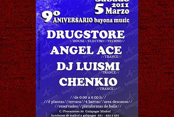 El colectivo de música electrónica Bayona Music cumple nueve años y para celebrarlo monta este sábado cinco de marzo un fiestón en Galapagar en el que sonarán todos los sonidos a los que da cabida.La Sala Project de Galapagar acogerá la fiesta con la Bayona Music conmemorará los nueve años de andadura de un colectivo que abarca estilos como el trance, el techno o el house. De hecho, en la party del sábado Chenkio, Luismi, responsables de UNKin TRance, y Drugstore se encargarán de montar "una fiesta como las de antes", en la que diversos géneros sonaran a lo largo de la noche.