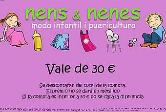 Este concurso lo promociona la tienda Nens & Nenes. Tiene de todo y cosas muy chulas, os invito a cotillear en su blog, aquí. La tienda va a regalar al ganador un vale por valor de 30 € en compra (no se va a dar el premio en metálico, no se va a dar la diferencia si el total de la compra es inferior a 30 €)