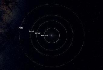 Utilizando la rueda del ratón podemos acercarnos o alejarnos para explorar nuestra galaxia. A medida que nos acercamos al sol van apareciendo los nombres de los planetas de nuestro sistema solar.