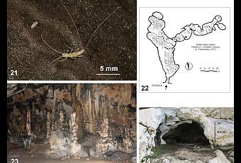 Figures 21–24. 21 Cycladiacampa irakleiae Sendra, sp. nov habitus (photo: I. Gavalas) 22 map of the cave of Irakleia, modified from Petrocheilou (1971); most of the specimens of Cycladiacampa irakleiae n.gen., n.sp. were collected in the western part of the cave 23 the first large chamber of Spilaio Agiou Ioanni cave (photo: I. Gavalas) 24 the narrow entrance of Spilaio Agiou Ioanni cave, Irakleia, Cyclades (photo: I. Gavalas). (Imagen extraída del trabajo anteriormente citado. DOI: https://doi.org/10.3897/subtbiol.35.53579.figures21-24)Este nuevo género se ha denominado Cycladiacampa y es espectacular. Podemos leer y descargar el artículo en el siguiente enlace a la web de la revista:
