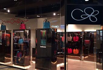 Para el cerramiento se han empleado paneles de vidrio, dejando ver el interior del espacio y los expositores. Los únicos elementos opacos los forman los logotipos de la marca.