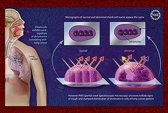 Investigadores de la Universidad de Northwestern, NorthShore University HealthSystem y la Universidad de Nueva York han desarrollado un sistema óptico que permite la detección temprana del cáncer del pulmón en pacientes de alto riesgo para la enfermedad. El método, llamado microscopía espectroscópica de onda parcial, analiza la fuerza de desorden de la nanoarquitectura de la célula de las muestras de células provenientes del revestimiento del interior de la mejilla. En un estudio inicial, los resultados demostraron una tasa de detección mayor al 50% en fumadores con cáncer del pulmón. Esta tecnica puede detectar las características de células de hasta 20 nanómetros, descubriendo las diferencias en las células que parecen normales cuando se utilizan las técnicas estándar de microscopía. El examen hace uso del “efecto del campo”, un fenómeno biológico en el cual las células localizadas a cierta distancia del tumor maligno, sufren cambios moleculares y de otro tipo.