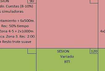 Jesús ha insistido mucho en que esta semana era crucial para administrar los volúmenes de las próximas semanas, por lo que salvo el circuito de core y agilidad que no tuve tiempo material de organizar, he cumplido a rajatabla, doblando entrenamientos el miércoles para alcanzar el objetivo.