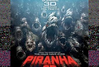 Vamos con algunas pequeñas novedades en este mundillo del cine y el aparato promocional que lo rodea, a ver si así palíamos un poco la sequía de este blog que apenas respira agobiado por el trabajo, y de paso refrescamos el ambiente (aunque no sé yo, igual lo caldeamos aún más...). Lo primero que traigo es un nuevo póster de Piranha 3D, de la que ya hemos hablado en más de una ocasión por aquí. Esta vez la imagen sigue teniendo un aire retro como vimos en una entrada anterior, pero las pirañas van a saco e impresionan aún más que en el póster anterior.