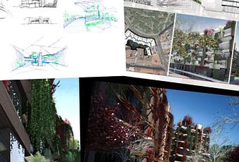 Se plantea la idea de continuar el parque en el edificio. Hay un escalonamiento del edificio para adaptarse a la pendiente de la calle. El edificio se diseña para que la volumetría se adapte a la pendiente de manera progresiva y mediante un juego de balcones, miradores, barandillas… haciendo que se vea como un conjunto.