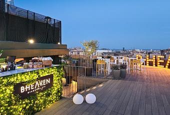 Al llegar el atardecer, el ROOFTOP B-HEAVEN abre sus puertas, ofreciendo una amplia selección de cervezas, cócteles clásicos y de autor, y muchas otras opciones.