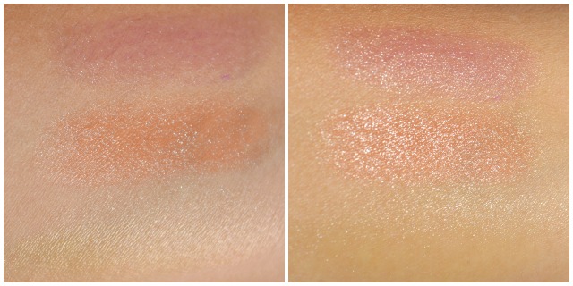 Les dejo con un swatch de cada uno, a la izquierda sin luz directa del sol y a la derecha con ella.