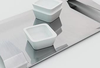 El estudio de arquitectura A-cero, dirigido por Joaquín Torres y Rafael Llamazares, presenta sus últimos diseños en elementos decorativos de interior A-cero In: 2 piezas porta velas y una bandeja, ambas fabricadas en acero pulido.