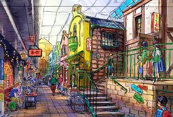 En el boceto de arriba se puede ver un área de restauración que recrea el de El viaje de Chihiro (aunque nadie nos asegura que no nos convirtamos en cerdos al comer allí 😜).