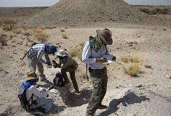 Haile-Selassie y su equipo documentando y recolectando fósiles en uno de los yacimientos de Woranso-Mille. / Dale Omori