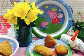 Nuggets crujientes de lomo. Presentamos un plato divertido para los niños de la casa ¿que no hay niños? en estos fogones denominamos niños a partir de dejar la leche materna hasta la pérdidas de dientes (y aquí hablamos de ese periodo de la vida que esta pérdida obliga a adjudicarse unos de quita y pon), valga como ejemplo que en esta casa no hay ya "niños", está Idefix que mira los nuggets fíjamente e incluso los amenaza con algún ladrido que otro por si se amilanan y saltan a su boca y luego la niña que soy yo ... y que me he preparado un platito que me he comido súper a gusto.Sacamos la masa, cogemos una ración con una cuchara y la pasamos por harina, huevo y pan rallado.