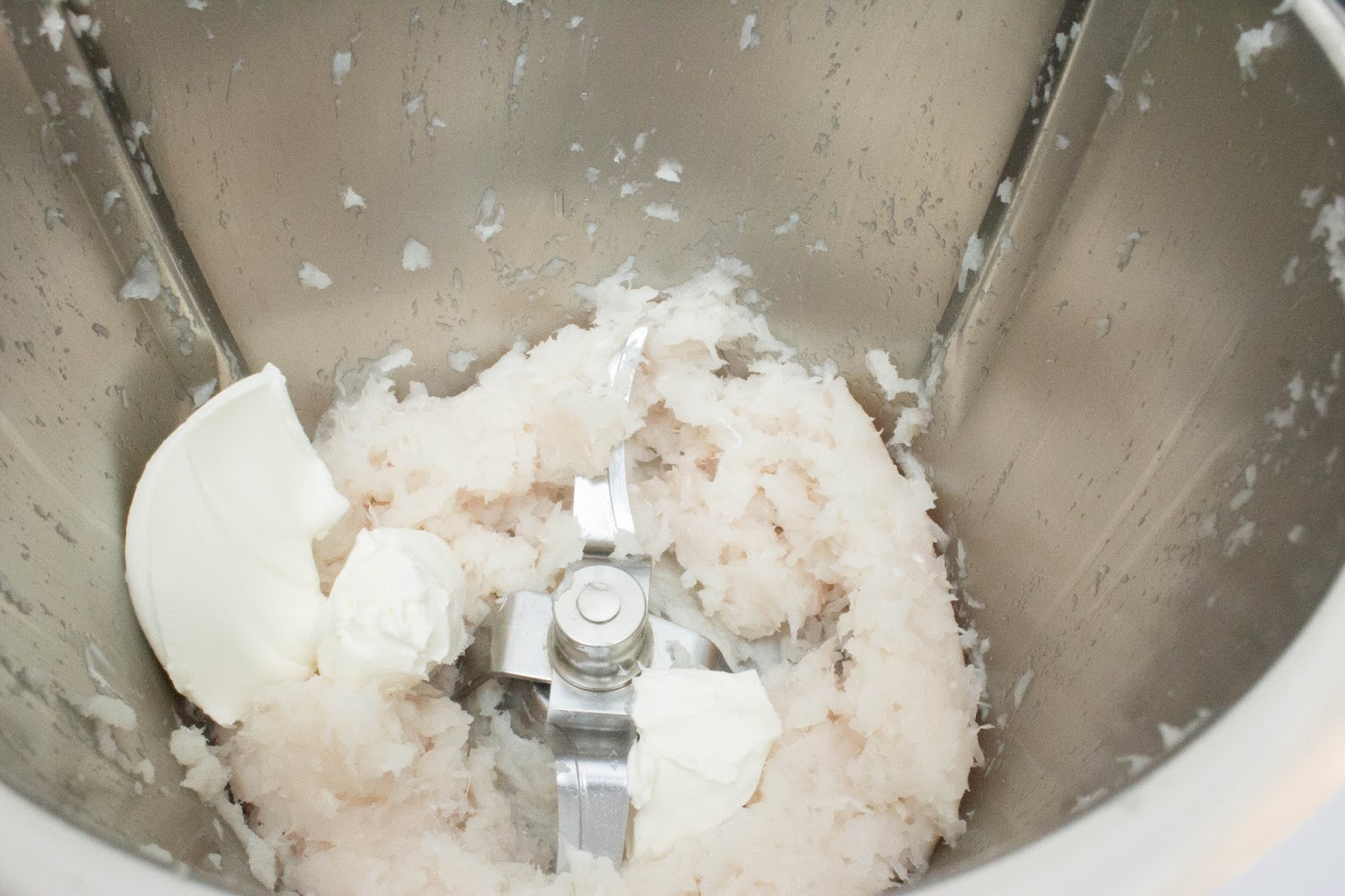 Añadirlo en la thermomix y triturar 8 segundos a velocidad 8. Luego echar el queso de philadelphia light.