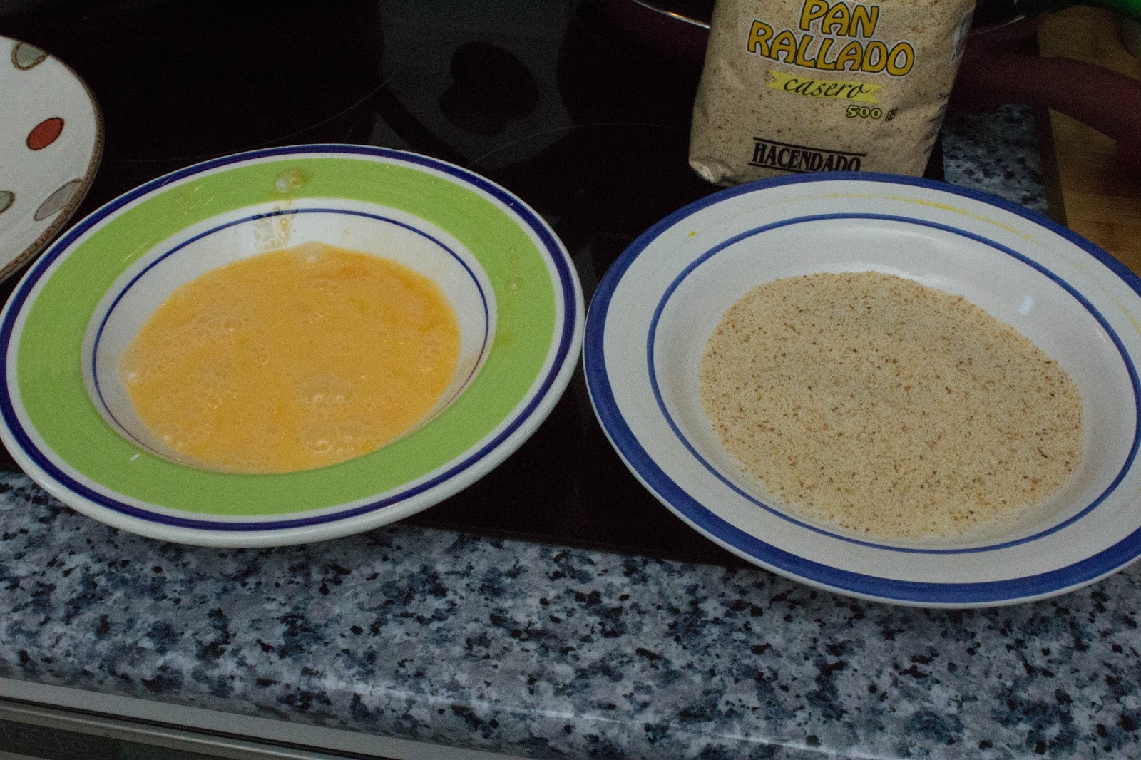 Luego añadirla al huevo de nuevo y de nuevo al pan rallado.