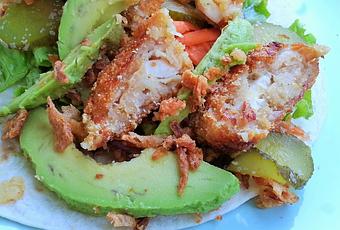 - Cogemos porciones de masa y las aplastamos con las manos. Colocamos en el centro un trozo de tofu y formamos ña forma de nuggets con las manos.