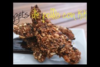 En otro plato aparte, pondremos el huevo para rebozar y lo haremos en el siguiente orden: pechuga, huevo, kikos reservados, huevo.