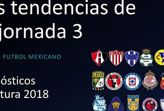 Publicado el 31 julio 2018 por Andres Andres Nz @vivoelfutbolTendencias de la jornada 3 del futbol mexicano, te presentamos estas probabilidades del futbol mexicano.