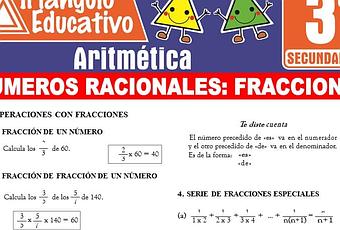 Aquí hallaras GRATUITAMENTE el siguiente material sobre Números Racionales Fracciones preparado especialmente para los estudiantes de Tercero de Secundaria. Este contenido se desarrolla en el curso de ARITMÉTICA y te lo compartiremos GRATIS en formato PDF.