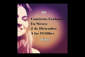 Nur vuelve a Siroco, lo hace con la intención de sorprendernos en directo.Nur nos quiere volver a sorprender con un show en Siroco, un show íntimo del que nos dejó un anticipo en los Premios Siroco, quizá sea una de las mejores formas de terminar el año, Nur quiere seguir presentando Origen, ese disco tan especial que siempre ha sorprendido, esperamos que el formato nos sorprenda, la única manera de saberlo es asistiendo, os dejamos las señas.Datos: