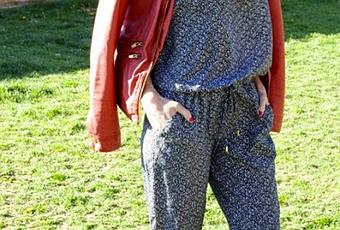 El segundo look que nos propone Nurstyle tiene como protagonista un mono largo palabra de honor con bolsillos laterales y cinturón. Nuria lo combina con una biker con hombreras roja que no solo consigue un aire más desenfadado, sino que además aporta el toque de color al outfit.