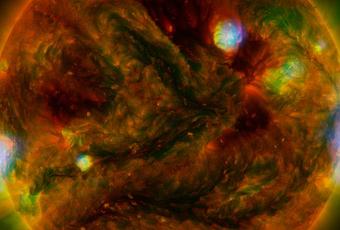 Las regiones activas en toda la superficie del Sol contienen material calentado a varios millones de grados. Las áreas de azul blanco que muestran los datos NuSTAR contienen los lugares más enérgéticos. Durante las observaciones, las microllamaradas, que son versiones más pequeñas de las llamaradas, que también entran en erupción desde la superficie del sol. Las microllamaradas liberan rápidamente la energía y calientan el material en las regiones activas. NuSTAR casi siempre mira más profundamente en el cosmos para observar los rayos X de supernovas, agujeros negros y otros objetos extremos. Pero también puede mirar con seguridad al sol y capturar imágenes de rayos X de alta energía con más sensibilidad que antes. Los científicos planean continuar estudiando el sol con NuSTAR para aprender más sobre las microllamaradas, así como las nanollamaradas, que son aún más pequeñas.