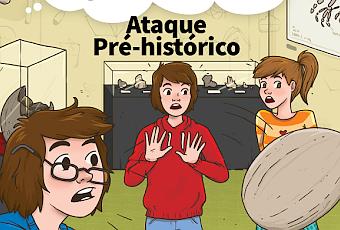 En "O Clube dos Cientistas" se cuenta la historia de Catarina, Chico y Carlos, tres hermanos curiosos y fascinados por la ciencia que siempre están en busca de aventuras. En el volumen 13 de la colección, titulado "Ataque Pré-histórico", tendrán que vérselas con un misterio paleontológico. Durante sus vacaciones, los chicos deciden visitar una exposición de dinosaurios y allí escuchan el sonido de una alarma. Rápidamente se dan cuenta de que algo peligroso está a punto de suceder y tendrán que actuar para salvar las valiosas piezas del Museo de Historia Natural. El libro se completa con diferentes actividades e información acerca de la fauna mezozoica de Portugal. Puedes ver un avance del libro aquí.