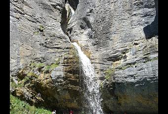 Salimos de Escarrilla en dirección al Portalet y justo antes de cruzar el puente sobre el Río Escarra nos metemos a la izquierda por el trazado de la antigua carretera. Sin llegar a cruzar el río seguiremos unos metros por la pista que remonta el cauce para entrar a la izquierda en un sendero que cruza dos barrancos en una zona bastante vestida por la vegetación, donde sobresale en temporada el fuerte olor de la menta de burro (Mentha longifolia). Llegamos a otra pista que remontaremos a nuestra derecha escasos metros para continuar por el sendero ascendente que discurre por la umbría de una roca y salimos a otra pista. Atravesamos el cercado que queda a nuestra derecha. A los pocos metros dejamos la pista para continuar por un sendero que nace a su izquierda. Un poco mas adelante abandonamos el itinerario que lleva a Cochata y al embalse de Escarra, para seguir por llano entre prados con arbustos y algún que otro árbol, pasado enseguida al lado del corral de la Artica Sarriales. Pasamos después por dos zonas de piedra, con buen sendero, y nos asomamos al poco al Río Escarra, desde donde ya vemos el salto o cascada conocida como O Saldo. Tras un corto descenso acabamos junto al río, al pie mismo del salto. Extraido de la web municipal: PDF RUTA