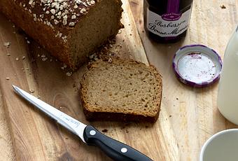 - Mix som lukewarm milk with honey and paint your bread. Spread some oat flakes over the bread.