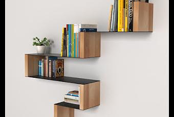 La colección está compuesta por once piezas: estanterías, mesas y armarios.