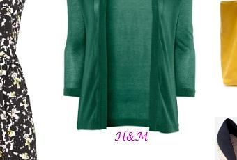 El primer look incluye un vestido de Mango que me parece monísimo -como siempre habrá que ver que tal el tejido- y del que me encanta el cuello -parece que un poco chimenea- con unas cuñas de esparto comodísimas para el verano y que permiten que ganemos unos centímetros y, al mismo tiempo, estemos cómodas. La chaqueta de punto -al menos aquí- es obligada para primera hora o última del día y me gusta mucho la combinación del tono verde que tiene con el amarillo del bolso!!!