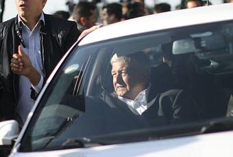 El vehículo en que se transporta Obrador es el mismo que usó en la campaña electoral, con vidrios transparentes.
