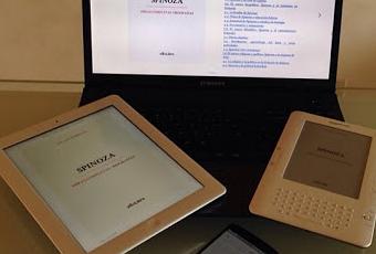 A Spinoza hay que leerlo en papel pero si la economía no le alcanza a uno o, como es mi caso, se vive con la maleta a cuestas, es de agradecer la digitalización; más si cabe cuando se trata de sus voluminosas obras completas, traducidas, editadas y comentadas recientemente por Atilano Domínguez Básalo con la meticulosidad del sabio-artesano y del amante esforzado. La tableta, el Kindle y el teléfono móvil me ayudaron a espinozar los tiempos muertos y de ocio. No eché de menos al papel aunque no le haría feos a una nueva lectura en celulosa.