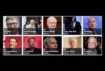 Oxfam utilizó la lista de multimillonarios de Forbes que fue publicada en marzo de 2016 para realizar su reporte. Según la lista de Forbes, el fundador de Microsoft Gates es la persona más rica del mundo con una fortuna neta de 75.000 millones de dólares. Las otras, en orden de escalafón, son Amancio Ortega, español fundador de la casa de modas Inditex; el financiero Warren Buffett; el empresario mexicano Slim Helú; el fundador y director ejecutivo de Amazon, Jeff Bezos; el creador de Facebook, Mark Zuckerberg; el empresario y fundador de Oracle, Larry Ellison; y Bloomberg, ex alcalde de Nueva York.