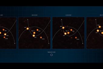 Imágenes obtenidas entre marzo y julio de 2021 con el instrumento GRAVITY en el VLTI, donde se observa estrellas orbitando muy cerca del agujero negro supermasivo Sgr A*. Crédito: ESO/Colaboración GRAVITY.