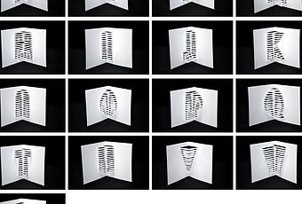 Utilizando papel plegado se crearon tipografías físicas en 3D. De estas surgieron derivaciones a fuentes digitales. Trabajo de Xie Chen