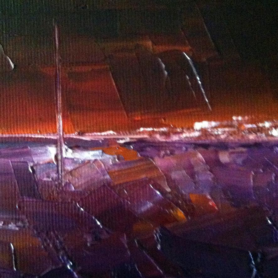 " Ocaso de invierno en el pueblo ""Winter sunset in the village""Winter Sonnenuntergang im Dorf""Le coucher du soleil d'hiver dans le village"óleo espátula lienzo. 2017.15 x 15 cm. detalles.Ocaso invierno pueblo