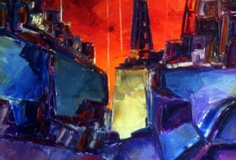 " Ocaso en el Astillero ".óleo espátula lienzo. 1998.073 ...
