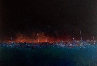 " Ocaso en puerto colorido ".Óleo espátula lienzo. 2015.0...