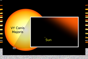 Comparación de los tamaños del Sol y VY Canis Majoris.