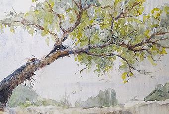Luego, en casa, se hacen otros con mas calma. En este caso un viejo cerezo con álamos, chopos y pinos al fondo.