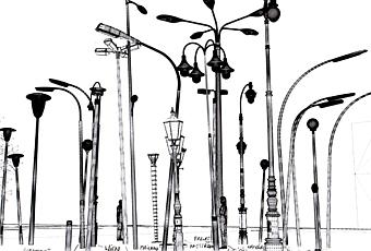 Sonja Vordermaier presenta esta instalación llamadaStreetlampforest formada por 30 farolas recolectadas en diferentes cuidades europeas de distintas épocas: Amsterdam, Berlín, Erfurt, Leipzig, Barcelona, Innsbruck, Milán, Hamburgo, Praga, Cagnes-sur-mer (Francia), Sarajevo, Stuttgart, Belgrado, Lippstadt, Munich, Sofía, Trieste y Viena.