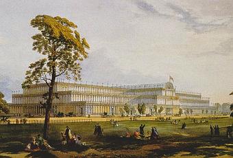 Este es el Palacio de Cristal de Londres. El primero, el que asombró al mundo por su novedad y avanzada ingeniería cuando se inauguró en él la Gran Exposición de 1851. Un edificio de hierro y cristal con una planta de más de 90.000 m2 construido en Hyde Park. Al terminar la exposición se llevó a un parque al sur de Londres. Aguantó hasta 1936, cuando un incendio lo destruyó.