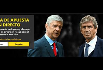 Realice una apuesta anticipada en el encuentro entre el Arsenal y el Manchester City y le ofreceremos una apuesta en directo sin riesgo de la misma cantidad para ese encuentro de titanes.
