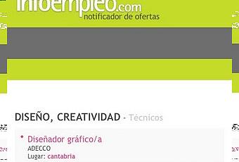 Infoempleo publica una oferta de jornada completa en Cantabria de Diseñador gráfico/a para una "importante empresa del sector del marketing y publicidad" a través de ADECCO.